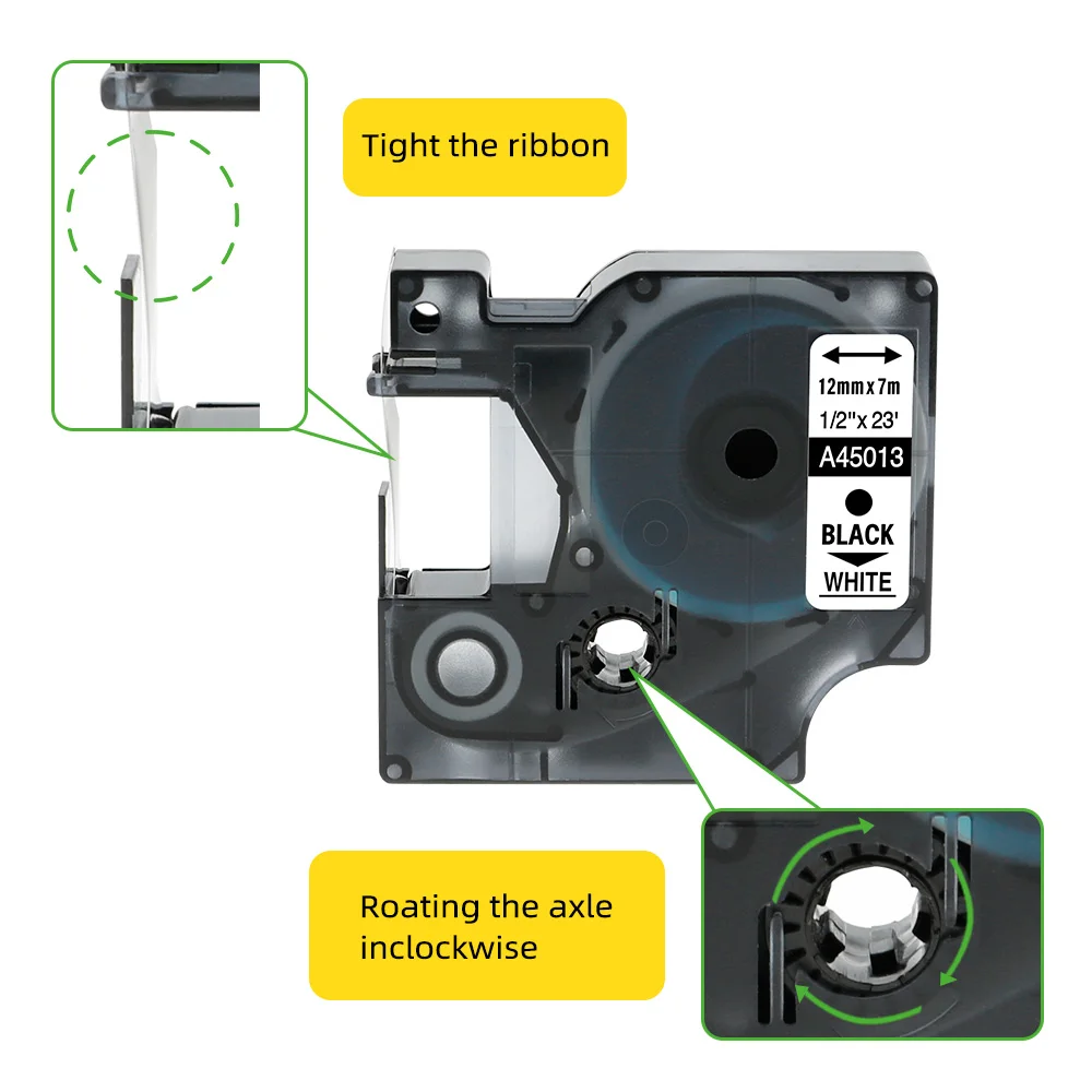 1 шт. Совместимость для Dymo D1 45013 45010 запечатанных лент 12 мм черная и белая ламинированная лента принтера для этикеток менеджер машина для нанесения этикеток на верхнюю 45018
