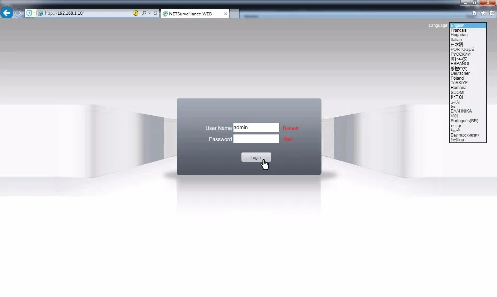 Локальный Логин, 192.168.1.10 (IP-адрес камеры по умолчанию) (облачный веб-сайт: www.xmeye.net)