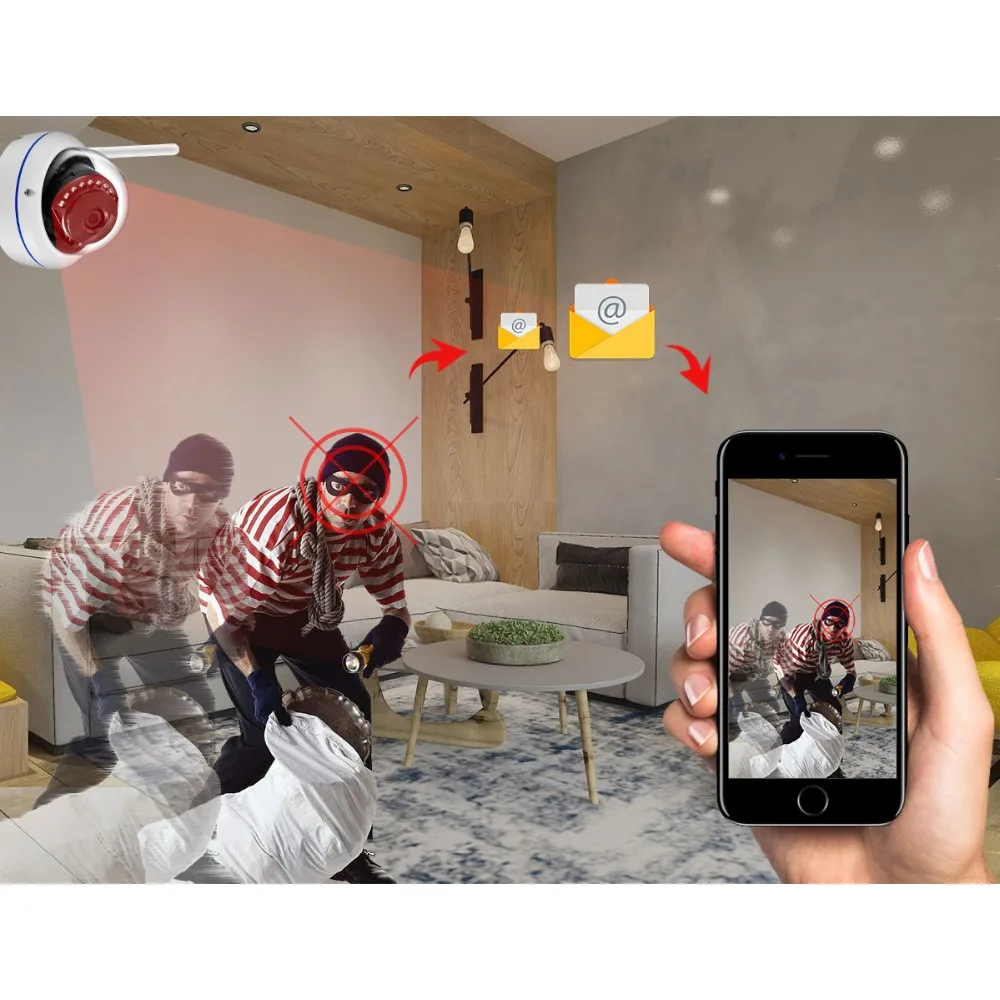 При обнаружении движения камера может отправить тревожное сообщение в приложение или отправить фото на вашу электронную почту. Тогда вы сможете своевременно проверить детали