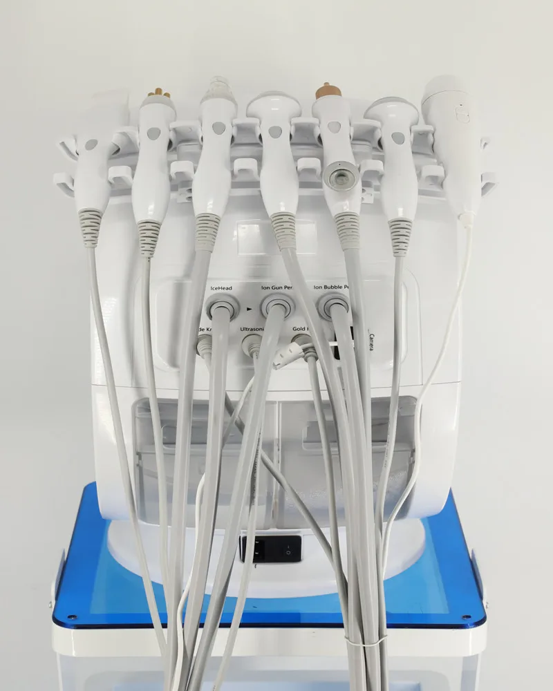 -- 1 Ультразвуковая головкаОдин миллион высокочастотных ультразвуков в секунду, достигая глубины фасции. Глубокое распространение ингредиентов для ухода за кожей на дно мышц. Глубокое диффузионное покрытие для ухода за кожей.-- 2 головки охлажденияПолупроводниковое охлаждение + воздушное охлаждение + технология водяного охлаждения, может снизить температуру до-5 градусов Цельсия,Удобный лед, успокаивает и восстанавливает чувствительную кожу, сужает поры и блокирует влагу и питание.-- 3 литий-ионный пушка брызга ручкаНано-уровень ультра-микро-распыления, разложения эссенции и ухода за кожей ингредиентов на нано-уровень небольших молекул, проникает вДно мышц глубоко через технологии распыления и проникновения и глубоко дополняет питательные вещества.-- 4 золотые RF головки24K позолоченная радиочастотная головка, 10 миллионгц высокая-freequency. Подходит для кожи и помогает ухаживать за кожей. Фокусируясь на тепловой энергии непосредственно на нижней части мышц, он стимулирует пролиферацию коллагена и восстанавливает сеть коллагеновых волокон.-- 5 литий-ионный пузырь ручкаВоздушный насос, импортированный из Южной Кореи, имеет сильное всасывание и может высасывать глубокие загрязнения пор. В сочетании с панорамной системой макросъемки кожи, она может очистить поры без мертвых углов.-- 6 ручек камерыКамера использует 10-мегапиксельную макросъемку высокой четкости и технологию трехспектральной визуализации для сбора подробных изображений кожи лица, это диагноз и анализирует 8-мерного кожи проблемы разумно через сердечник двигателя искусственного интеллекта; Мы можем сшить косметология программ лично и порекомендовать профессионального средства по уходу за кожей на основе диагностики результаты разумно;-- 7 высокочастотных потертостейУльтразвуковая высокочастотная вибрация 24 кГц-25 кГц, ударяет грязь глубоко в поры, удаляет угри, прыщи, остатки макияжа и другие мелкие загрязнения с поверхности кожи, не повреждая кожный барьер.