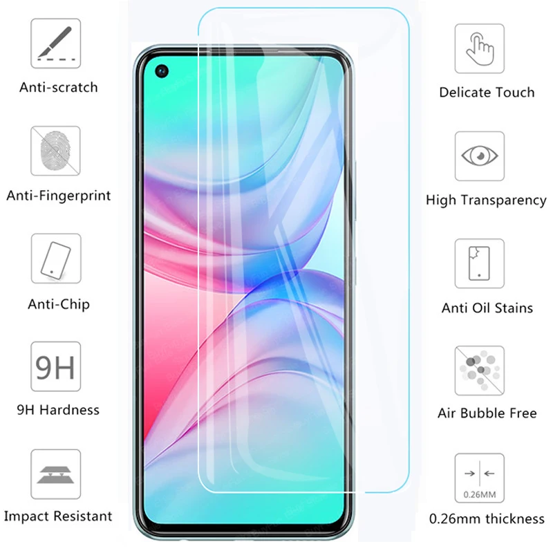 4 в 1, 2 шт., переднее + 2 шт. закаленное стекло для объектива Oppo...