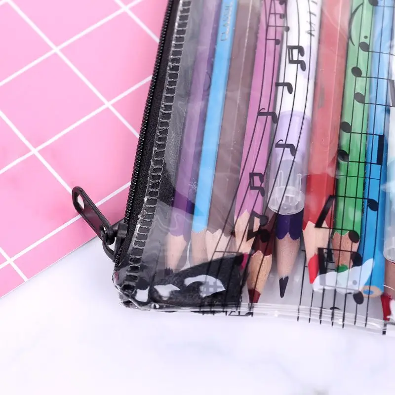 Пластиковый прозрачный чехол для карандашей с музыкальной нотой и к...