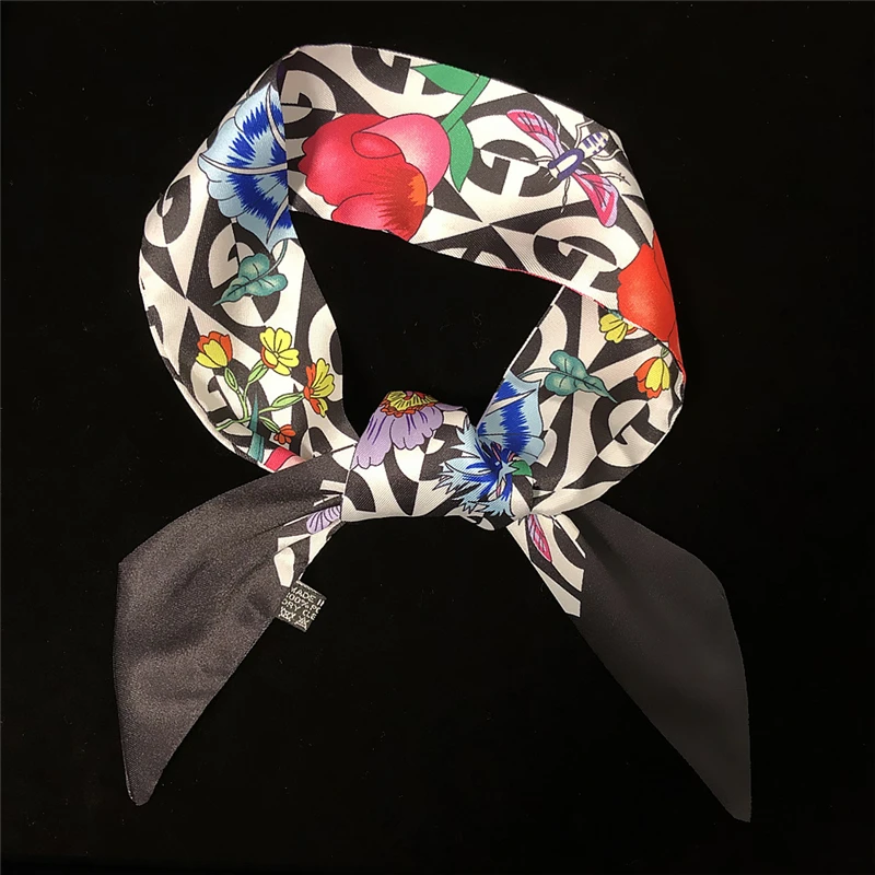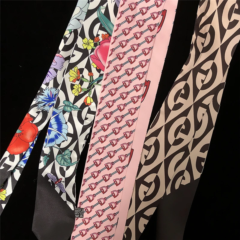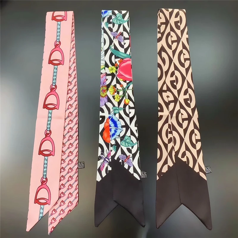 2021 женская сумка-кисет, шарф с цветочным рисунком саржа шарф из искусственного шелка обернутый с одной ручке маленькая лента женский Тюрбан повязка на голову м