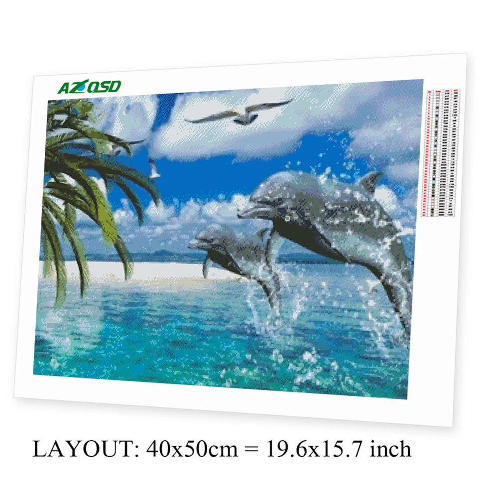 AZQSD полная дрель алмазная живопись дельфин ручной работы подарок Алмазная вышивка животные мозаика рукоделие домашнее украшение