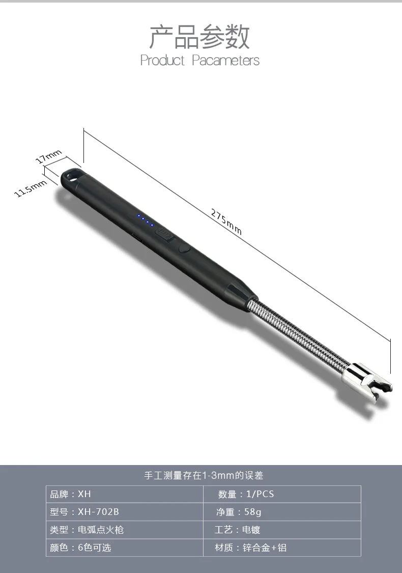 USB импульсно-дуговая Зажигалка зажигания пистолет лампы в форме свечи газовая плита воспламенитель 360 градусов шланг стержень зажигания показывает о Зажигалка Алюминий трубка безопасные барбекю газа