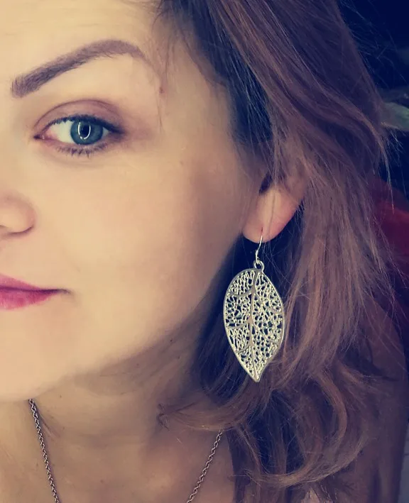 Очаровательные 925 тисненые серебряные Простые серьги-листья ожерел...