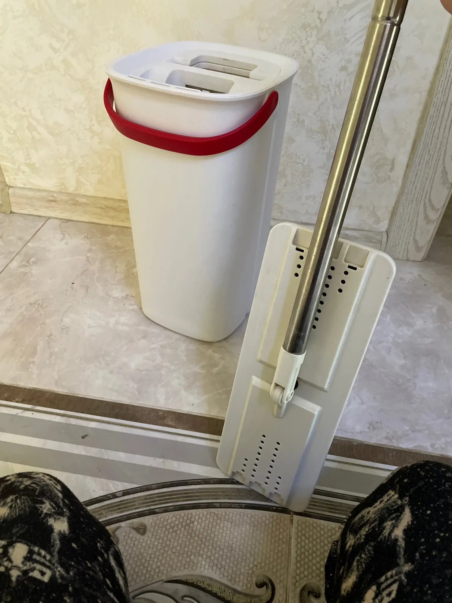 Пользуюсь этой шваброй пол года.Из плюсов:тряпка не оставляет разводов ,ведро хорошо моет и выжимает,волосы тоже хорошо убирает.Из минусов:очень слабое основание швабры так что аккуратно нужно пользоваться,тряпка быстро рвётся! Но в принципе не жалею о приобретении,полы мыть стало намного легче!