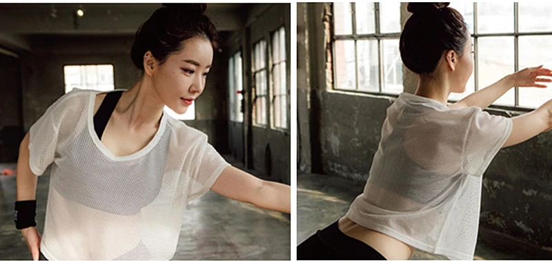 Женская сетчатая рубашка для йоги, Сексуальная футболка с коротким ...