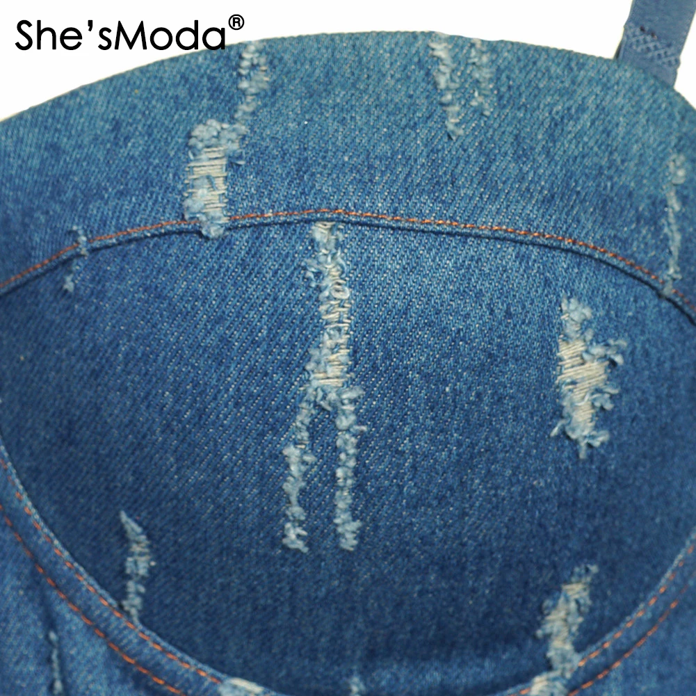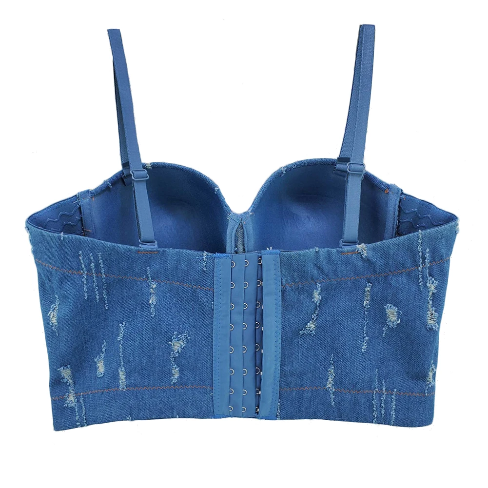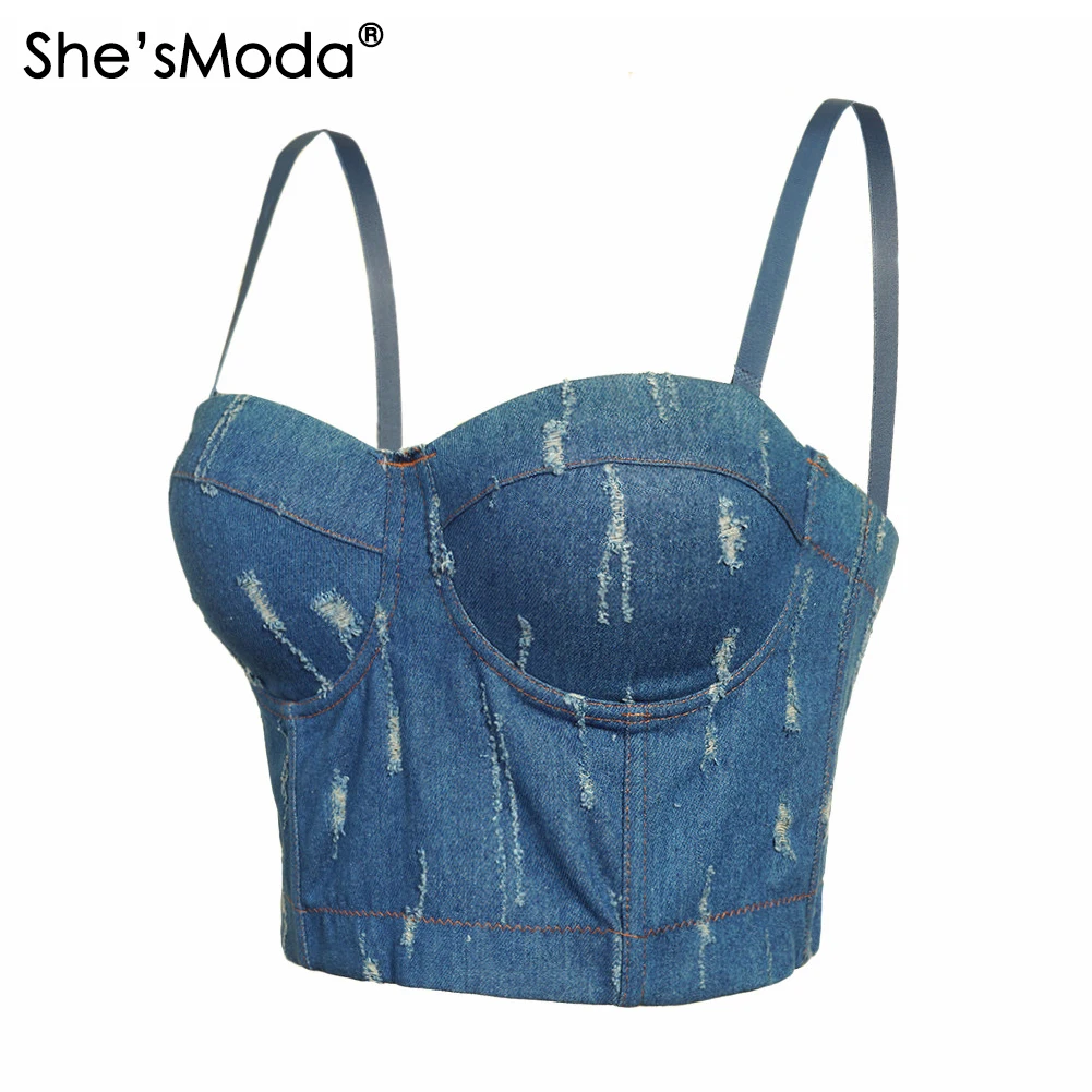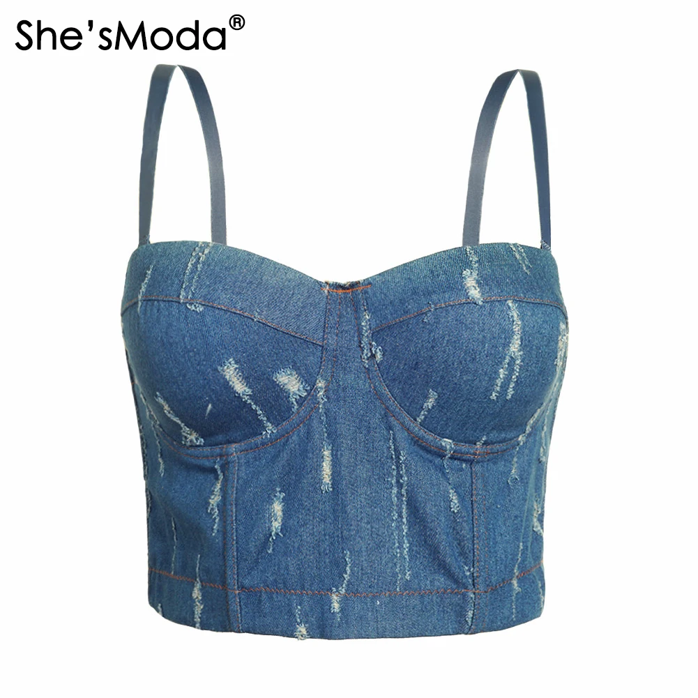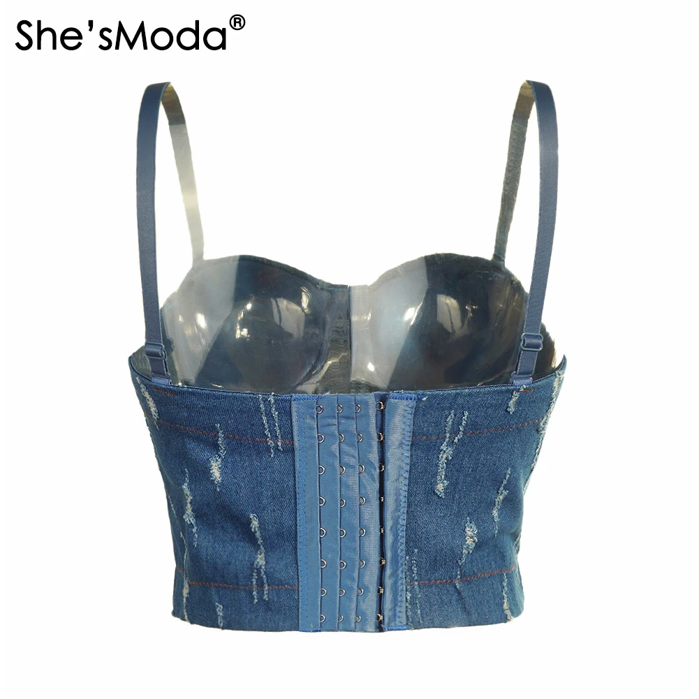 She'sModa джинсовое Sratched Для женщин бюстгальтер 2021 бюстье бриллиантами для ночного клуба вечерние укороченные топ, жилет размера плюс