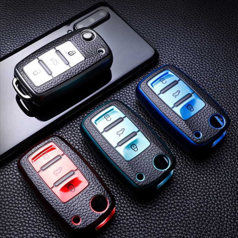Чехол для автомобильного ключа из ТПУ, чехол для Volkswagen, Jetta, Golf, Passat, Beetle, Skoda Seat, Polo, B5, Складной автомобильный чехол для ключа с дистанционным управлением
