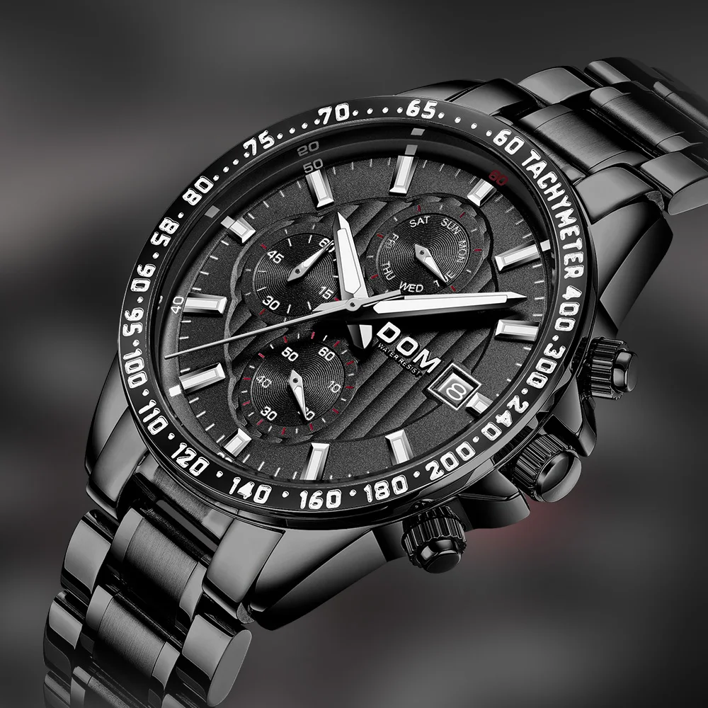 Часы DOM мужские с хронографом, брендовые Роскошные модные водонепр...
