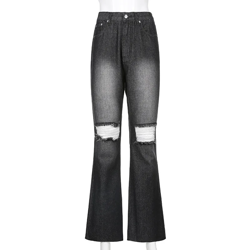 Джинсы женские рваные в стиле Харадзюку, Модные расклешенные брюки ...