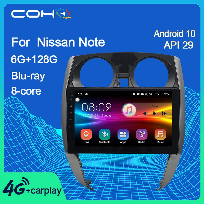 Автомобильный мультимедийный плеер COHO для Nissan Note, радио, Gps-навигация, Android 10,0, Восьмиядерный процессор, 6 + 128 ГБ