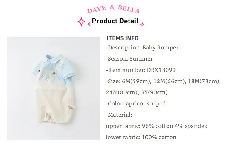 DBX18099 нижнее белье в стиле бренда dave bellaЛетняя одежда для маленьких мальчиков, модные, в полоску, с героями мультфильмов; Костюмы для младенцев; Одежда для малышей; Детский комбинезон; 1 шт.