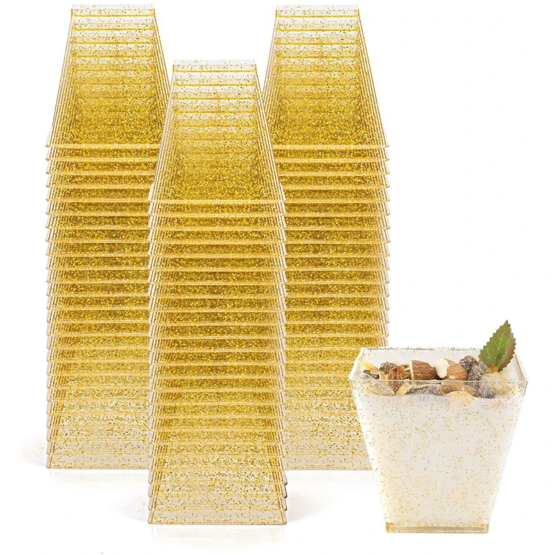 Маленькие десертные чашки с ложками 100x2 унции, квадратная коротко...