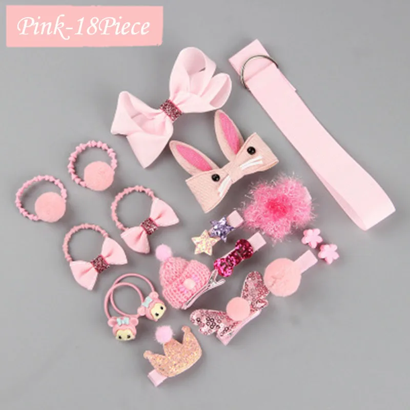 Набор детских эластичных резинок для волос из 18 предметов, детские кружевные головные уборы, подарок для девочек, розовый набор аксессуаров для волос, 2020 милые Мультяшные банты с цветами