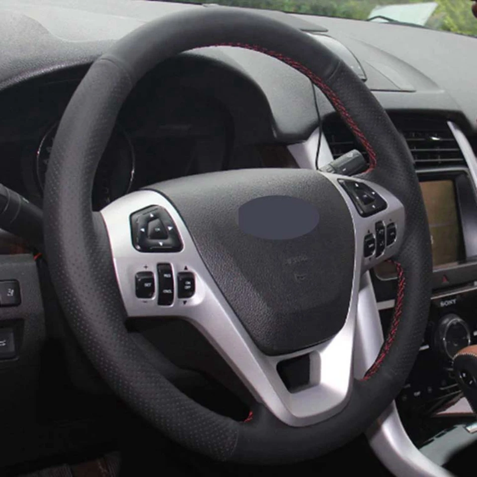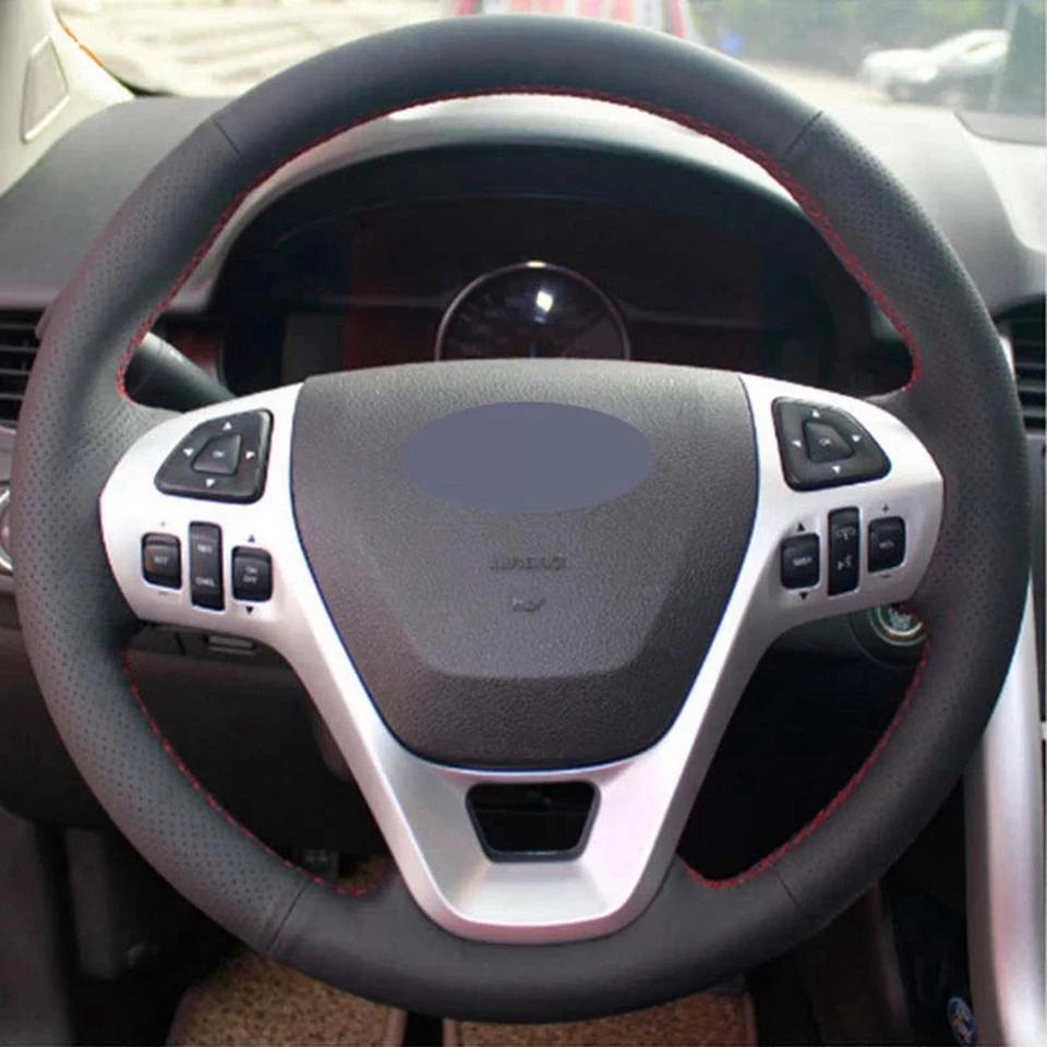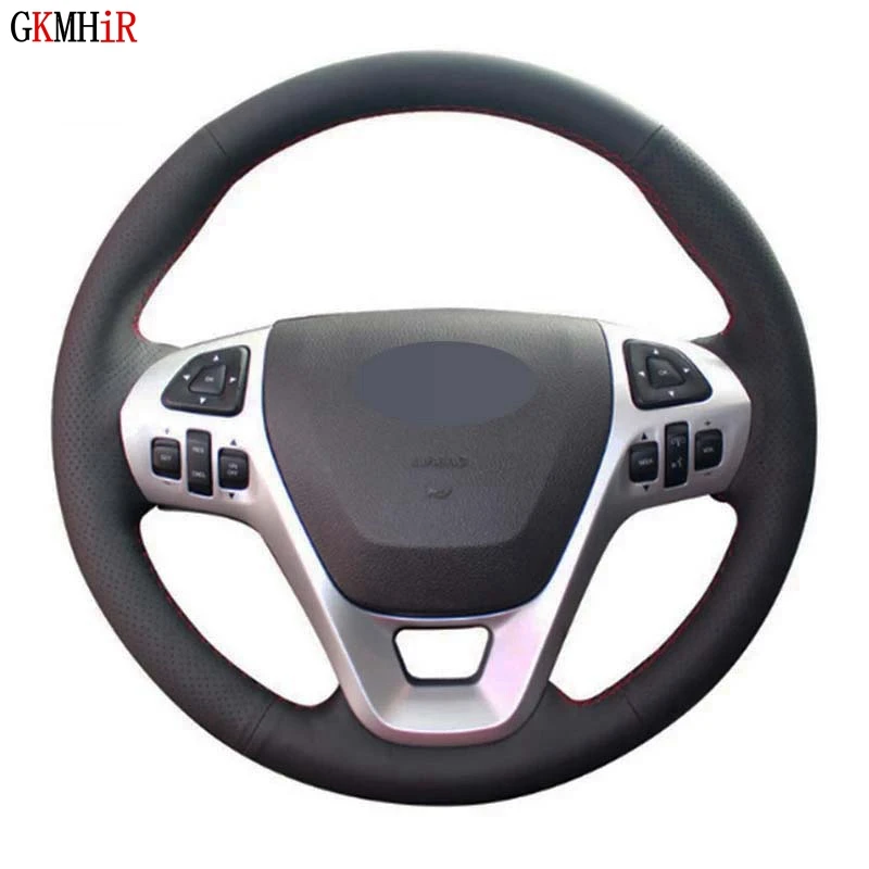 Рука сшитый черный натуральная кожа чехол рулевого колеса автомобиля для Ford Explorer 2011-2016 Телец 2012-2015 Edge 2011-2014