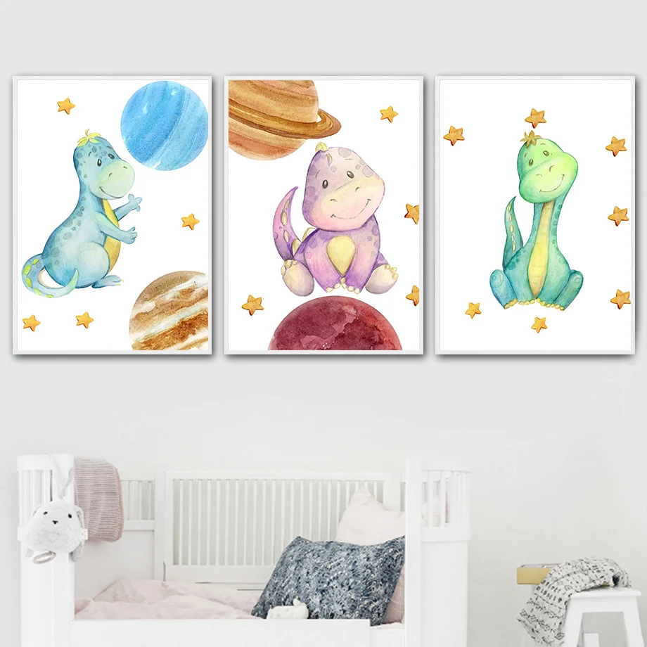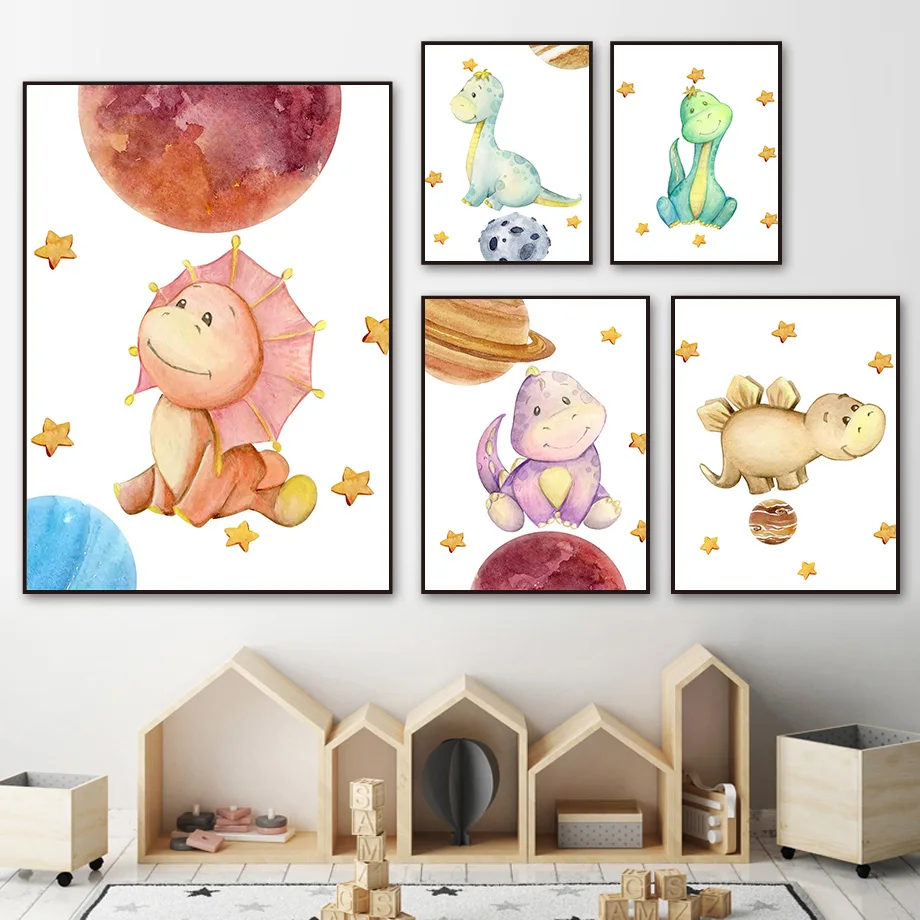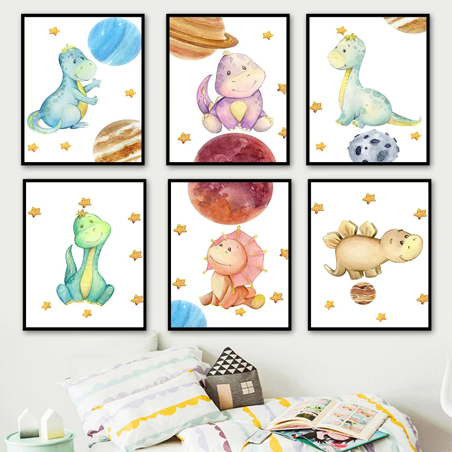 Мультяшный динозавр, Трицератопс, тираннозавр, настенная Картина на...