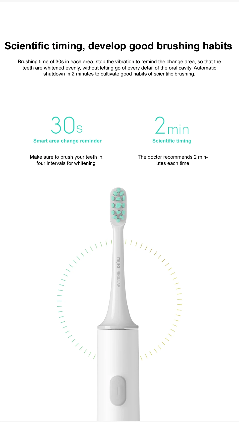 ● 31000 раз в минуту высокочастотная вибрация, сильная чистка зубов● Без ржавчины и без металла головка щетки, безопаснее и здоровее● 25 дней выносливости, хороший компаньон для путешествий● Функция памяти для записи ваших предпочтений и привычек● Номинальное напряжение: 5 В● Номинальная мощность: 2 Вт● Время зарядки: 4 часа● Емкость аккумулятора: 700 мАч