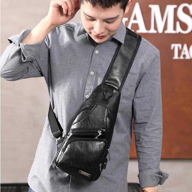 Модная мужская кожаная сумка-слинг, нагрудная сумка через плечо, Байкерский ранец, мужской портфель из искусственной кожи на ремне из ПВХ