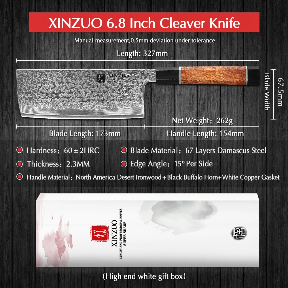 Нож-Кливер XINZUO 6,8 дюйма Janpanse, 67 слоев дамасской стали, узор, нож для резки мяса, Nakiri Gyuto, мясник, нарезка сантоку