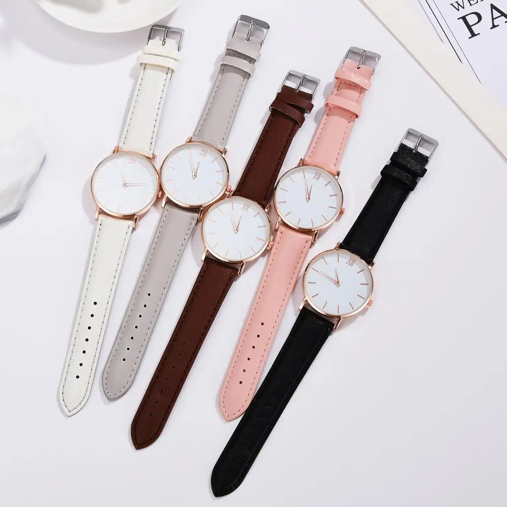 Часы наручные женские простые, модные повседневные, с кожаным ремешком