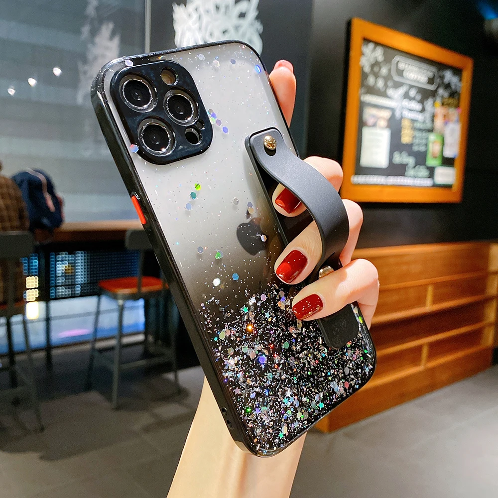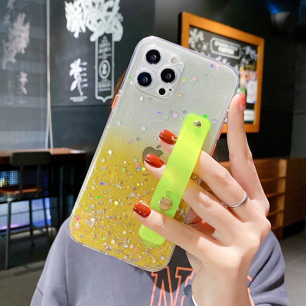 Ремешок на запястье с подставкой для телефона для Samsung S21 S20 FE A21S A51 A71 A52 A72 A32 5G A12 A31 мягкая защита для объектива для блеск прозрачный чехол для телефона