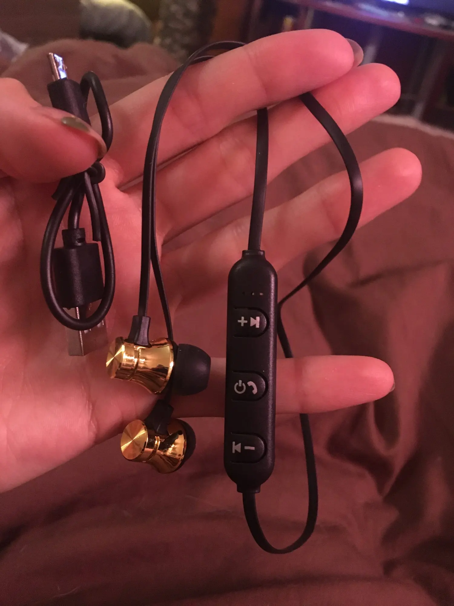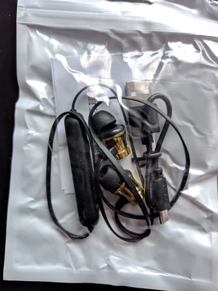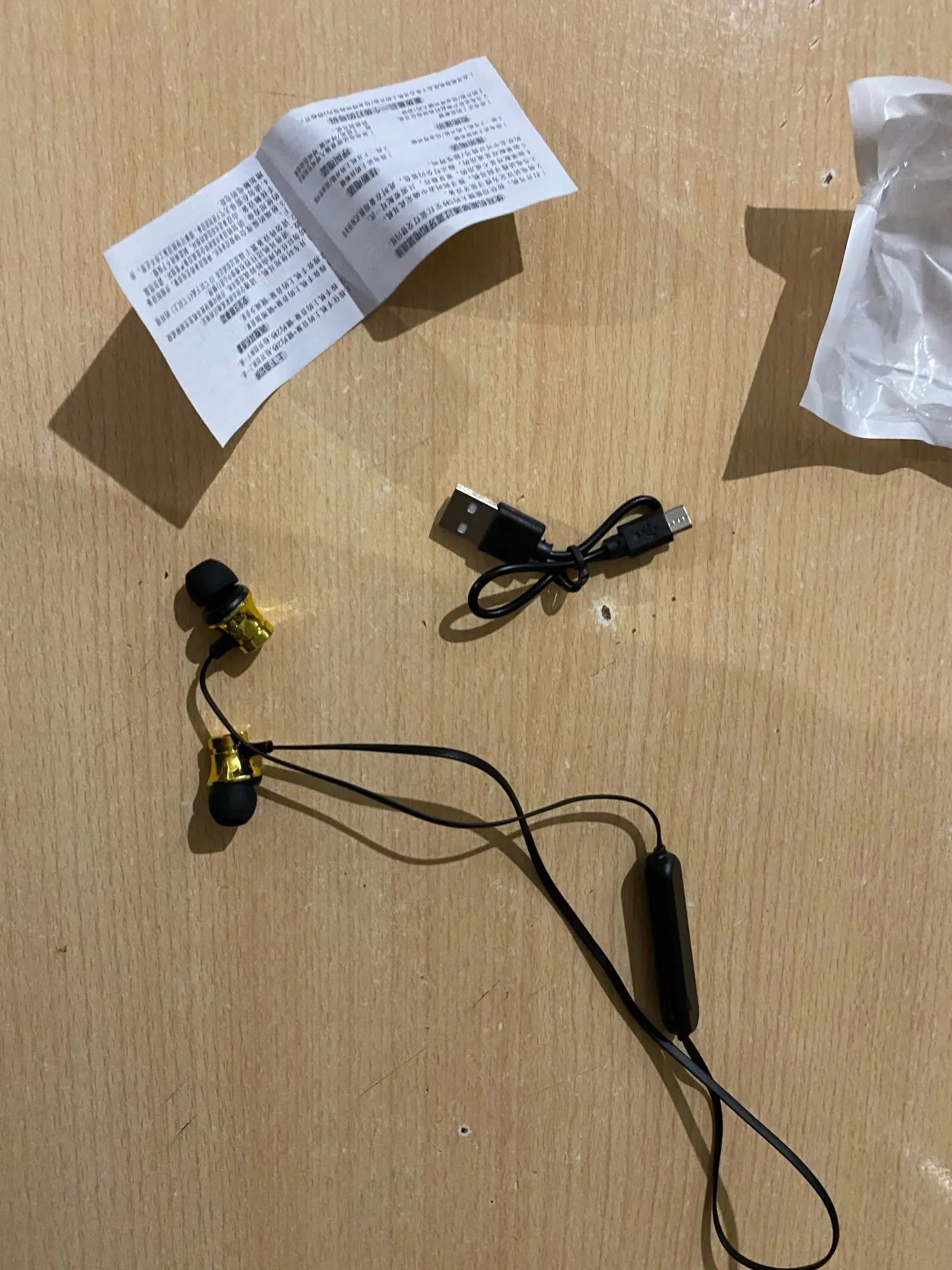 да, наушники не дорогие, да, выглядят хлипко, да, надписи на кнопках смазаны, да, техника не вызывает доверия! НО! они работают, хорошо сидят в ушах, кнопки упруго функционируют, "уши" подключаются быстро к телефону. в общем, чтобы послушать музыку без доморощенного эстетства "звучание басов не такое яркое, как...", подрезать под аудиокнигу - техника оптимальная. ну, а в остальном пока не купите, не поймёте - повезло вам или нет) в комплекте наушники, шнур зарядка и инструкция на языке наших китайских братьев.