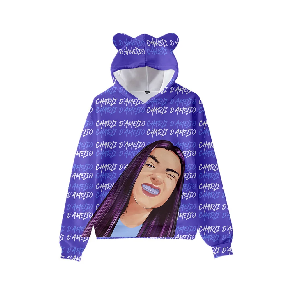 Толстовки Charli DAmelio 3D с кошачьими ушками, толстовки Charli am...