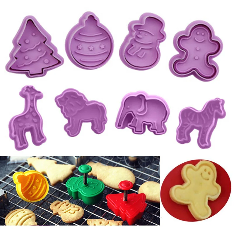 4 шт. штампованные формы для печенья 3D плунжеры для печенья, украшения для кондитерских изделий, сделай сам, инструмент для выпечки помадной, Рождественская елка, снеговик