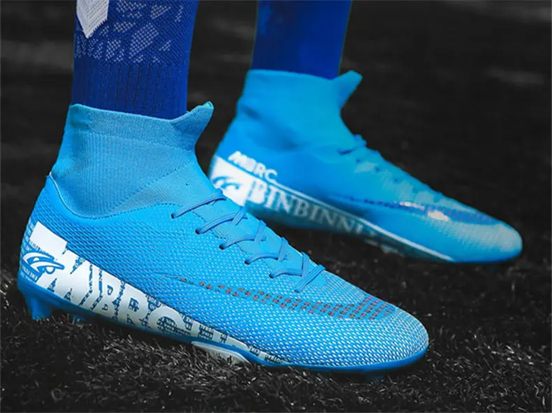 Горячая Распродажа, синие высокие футбольные бутсы, мужские уличные Нескользящие мужские футбольные бутсы, Дышащие футбольные бутсы FG/TF, тренировочный Спорт