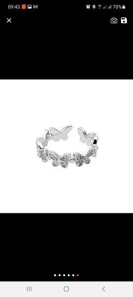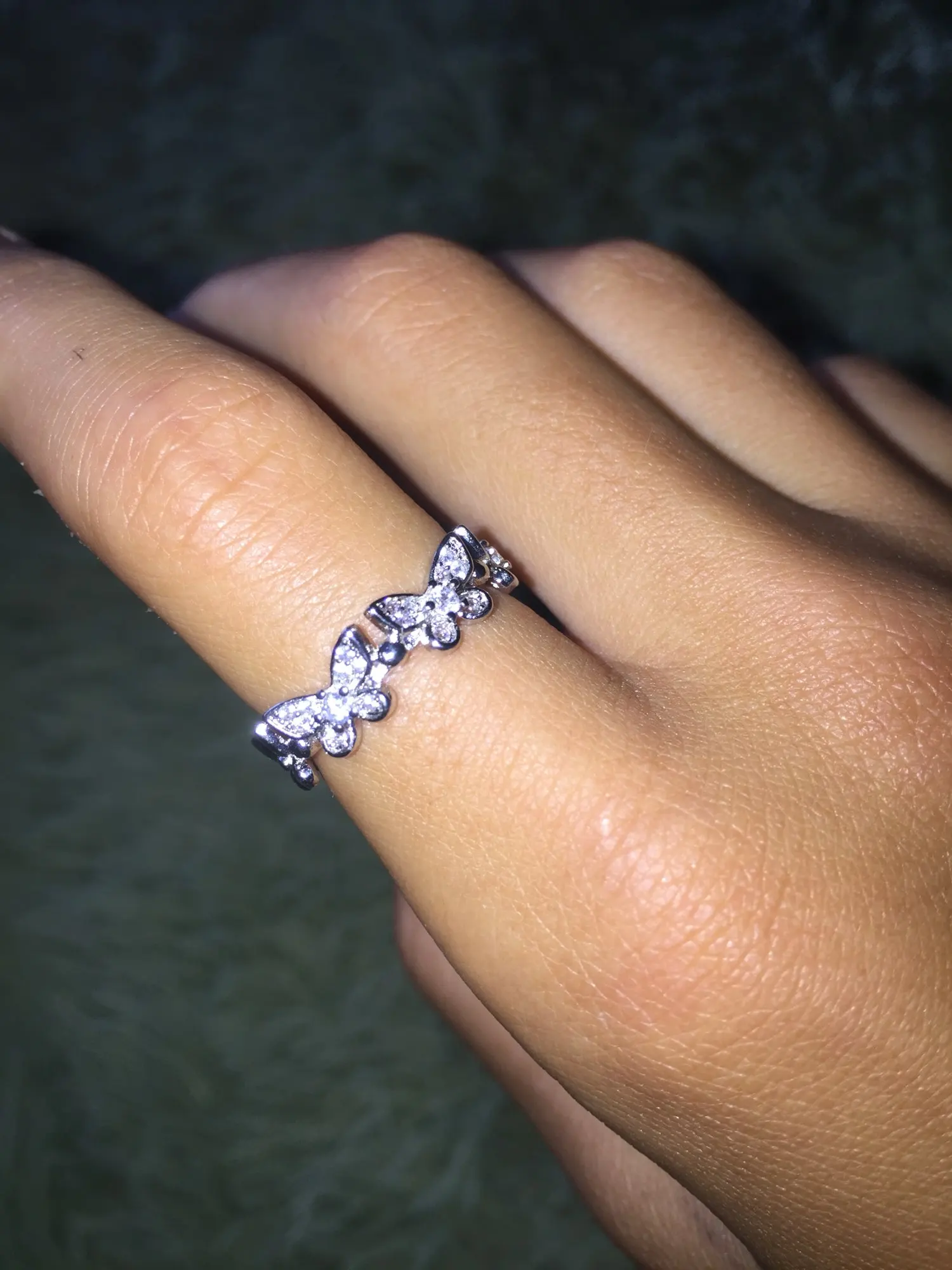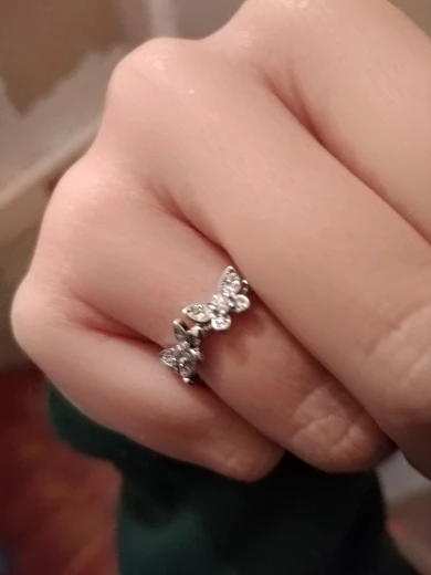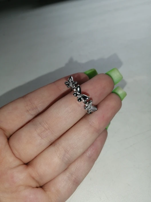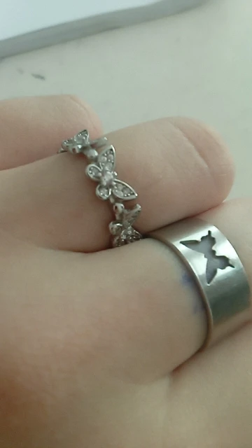Вещь такая красивая, она как идеальная и очень приятная на ощупь. Я думал, что он будет более блестящим, но, безусловно, нет, только 3 бабочки на de ring имеют блеск/блеск. В целом очень хороший, даже изменяемый размер, но будьте осторожны, потому что если вы сделаете это слишком быстро или сложно, вы, вероятно, сломаете его.
