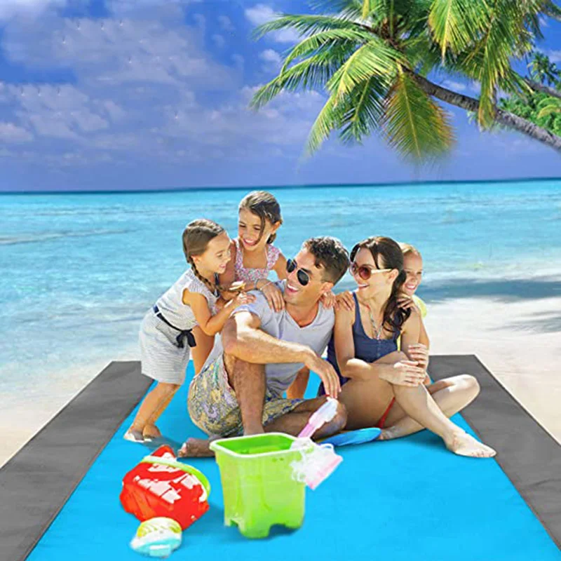 Большой Пляжный коврик 200x210 см, пляжное полотенце без песка, пляжное одеяло с защитой от песка, карманный коврик для пикника с 4 якорями и защитой от ветра и песка
