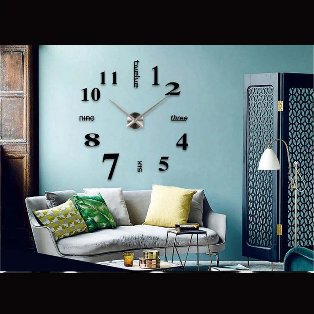 Бесшумный механизм часов для 3D настенных часов, черный бесшумный кварцевый металлический Большой Настенный часовой механизм, замена часового механизма