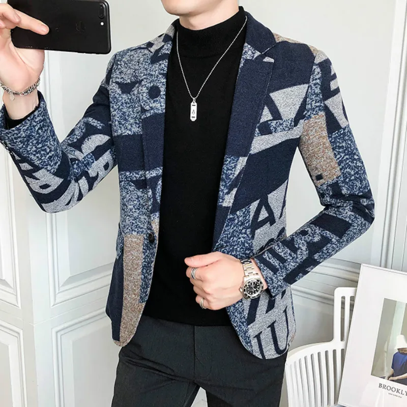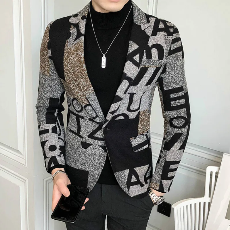 Для мужчин с буквенным принтом шерстяной пиджак 2021 Весенняя Мужская рубашка пиджак Повседневный пиджак Slim Fit вечерние ночного клуба Свадебный социальных Блейзер Homme