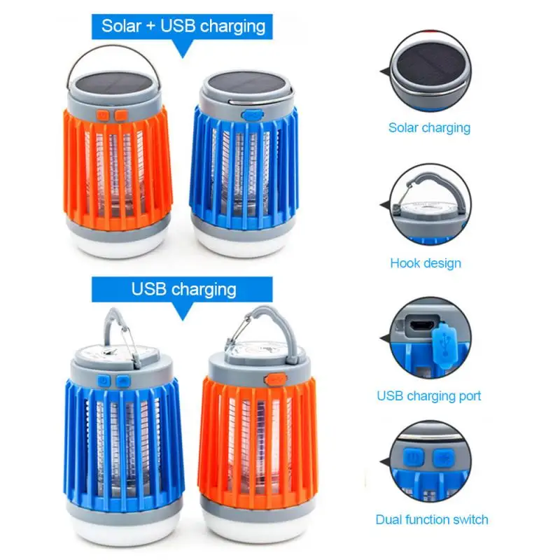 Три-в-одном солнечной Мощность светодиодный солнечный ловушка для комаров убийца лампа 3000V Электрическая мухобойка USB Перезаряжаемые летние ловушка для мух насекомых