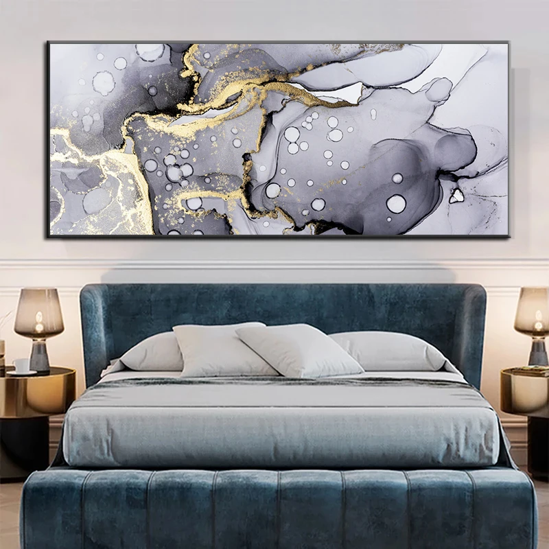 Абстрактная серая Золотая картина, настенное искусство, Геометричес...