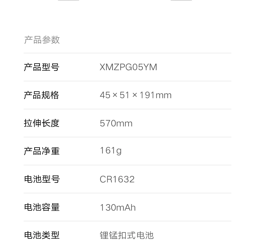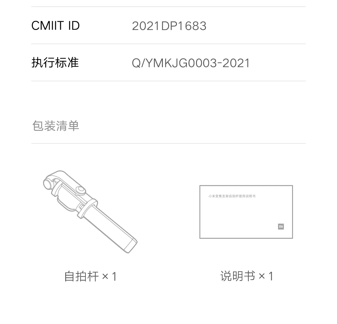 Характеристики:Бренд: XiaomiПараметры продуктаМодель продукта: XMZPGO5YMХарактеристики продукта: 45 × 51 × 191 ммДлина растяжения: 570 ммВес нетто продукта: 161 гМодель аккумулятора: CR1632Емкость аккумулятора: 130 мАчТип батареи: литий-марганцевая кнопкаCMIIT ID: 2021DP1683Исполнительный стандарт: Q/YMKJG0003-2021Посылка включает в себя:1 * селфи-палка Xiaomi Mi Zoom1 * Руководство пользователя
