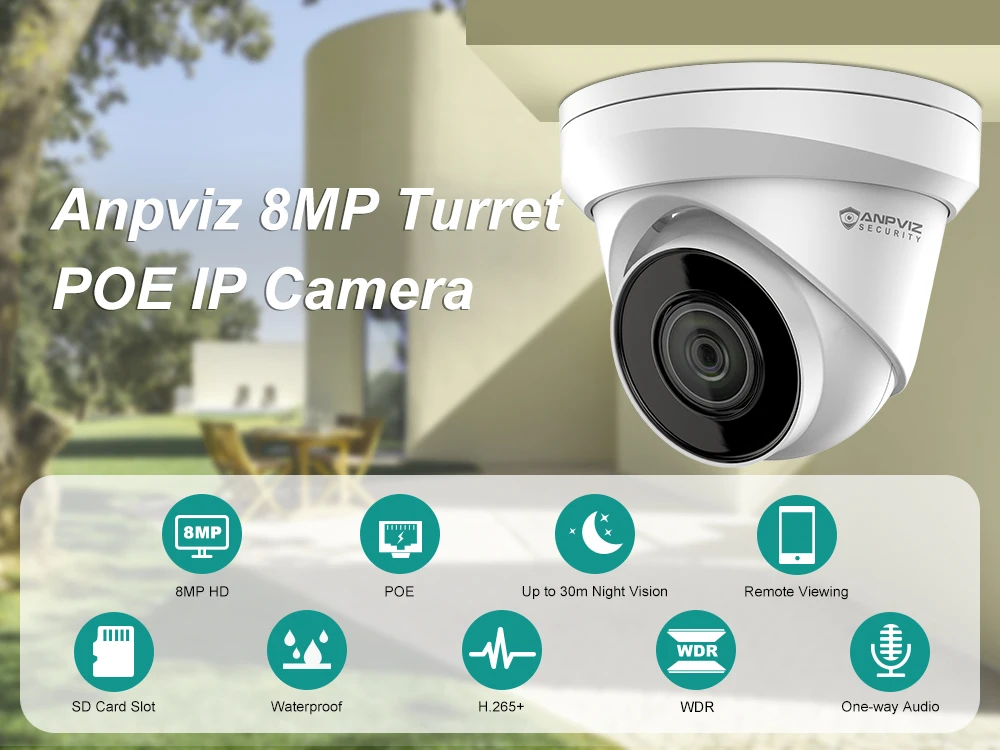 IP-камера видеонаблюдения Anpviz, 4K, 8 Мп, POE, H.265 + ИК, 30 м
