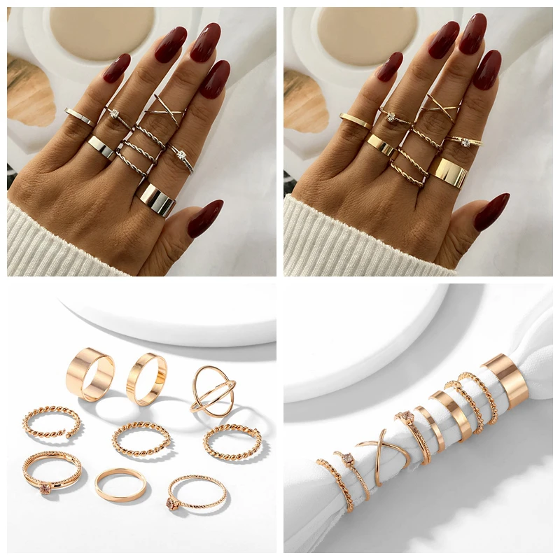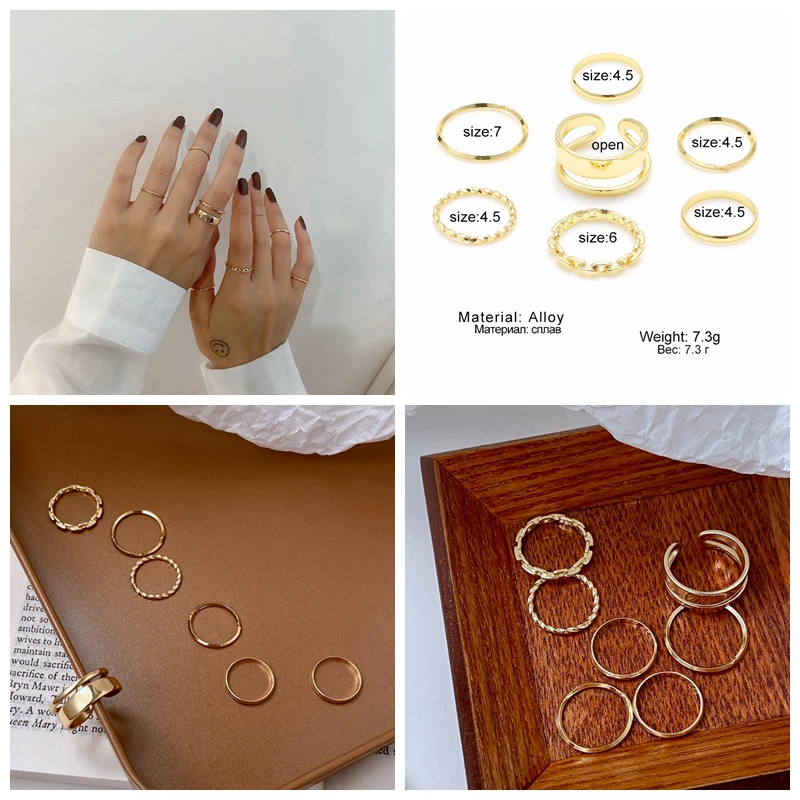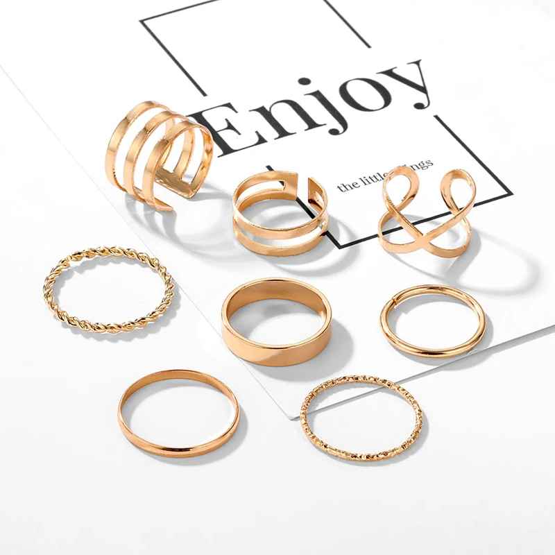Набор женских колец VKME, 8 шт.компл., толстая Золотая цепочка, геометрические украшения, простые, богемные, 2021