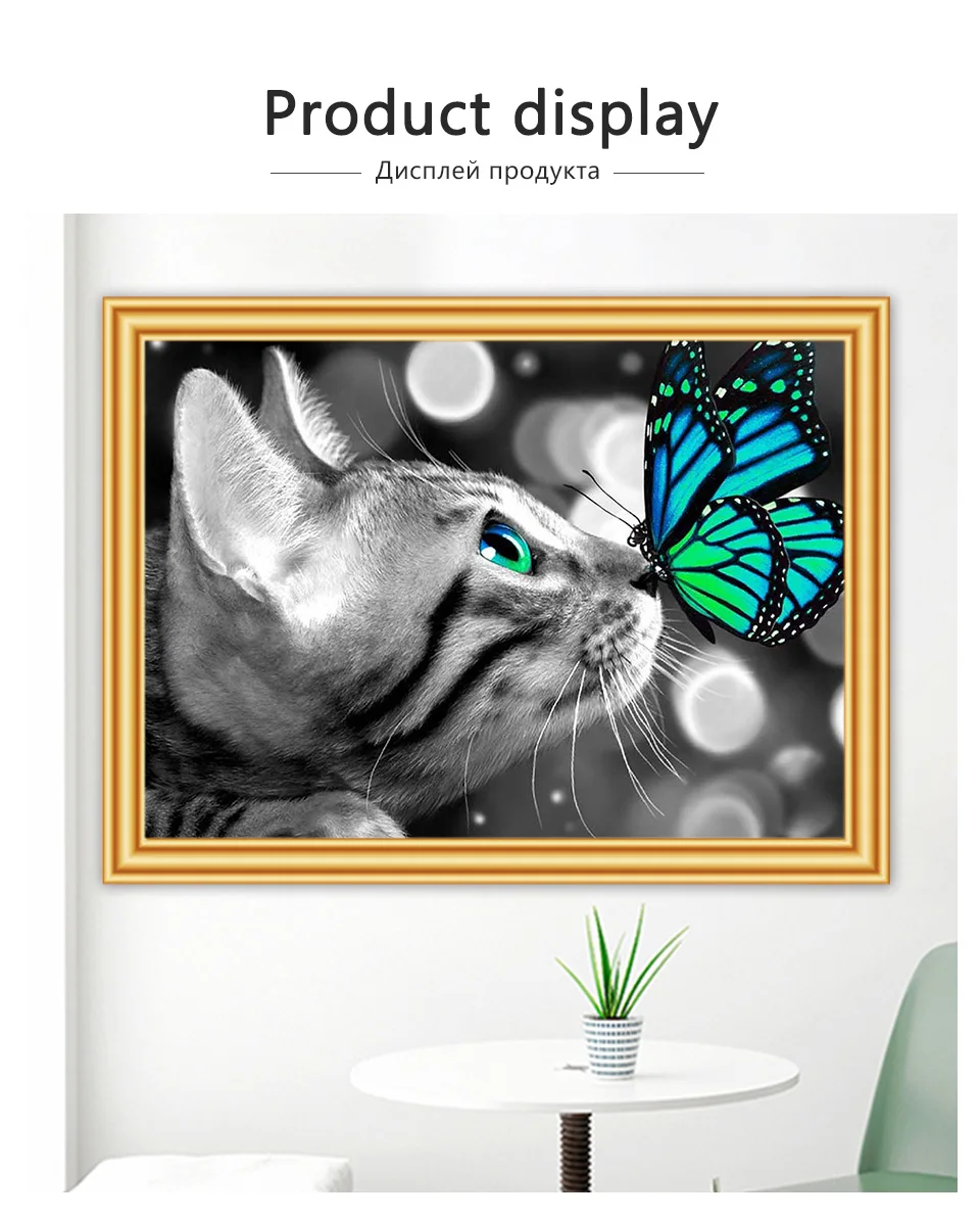 Алмазная 5D картина сделай сам, Набор для вышивки крестиком с кошкой, бабочкой, мозаика для творчества, украшение Стразы