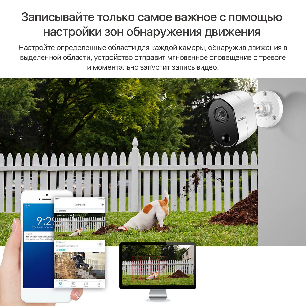 ZOSI H.265 + 5Mп комплект с камерами видеонаблюдения. DVR с наружными 5Mп камерами дневного и ночного видения, с датчиком движения PIR, + 1 ТБ жесткий диск