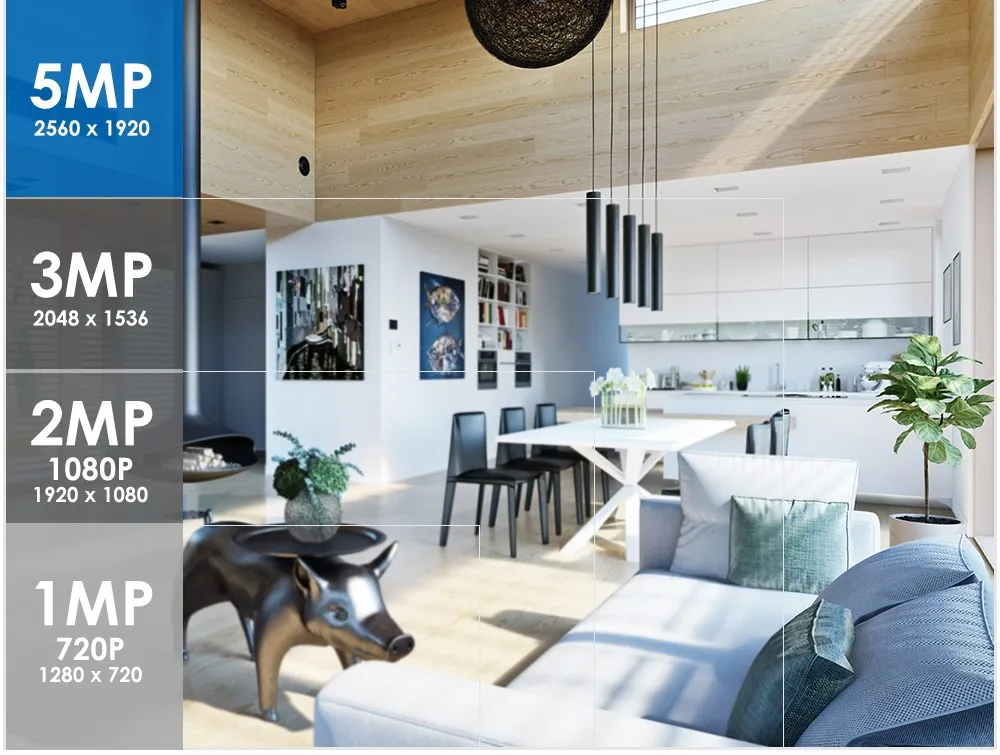 5 мегапиксельное видео супер высокой четкости, 2. 5 x лучше, чем 1080P Full HD. Камеры видеонаблюденяи высокой четкости для наружного и внутреннего наблюдения. Наблюдайте за объектом в максимально четком изображении днем или ночью с автоматическим ИК-фильтром камеры. Функция Pir с ночным видением 15м. IP66 Код защиты - всепогодный корпус устройства. Камеры можно использовать в помещении и на открытом воздухе.