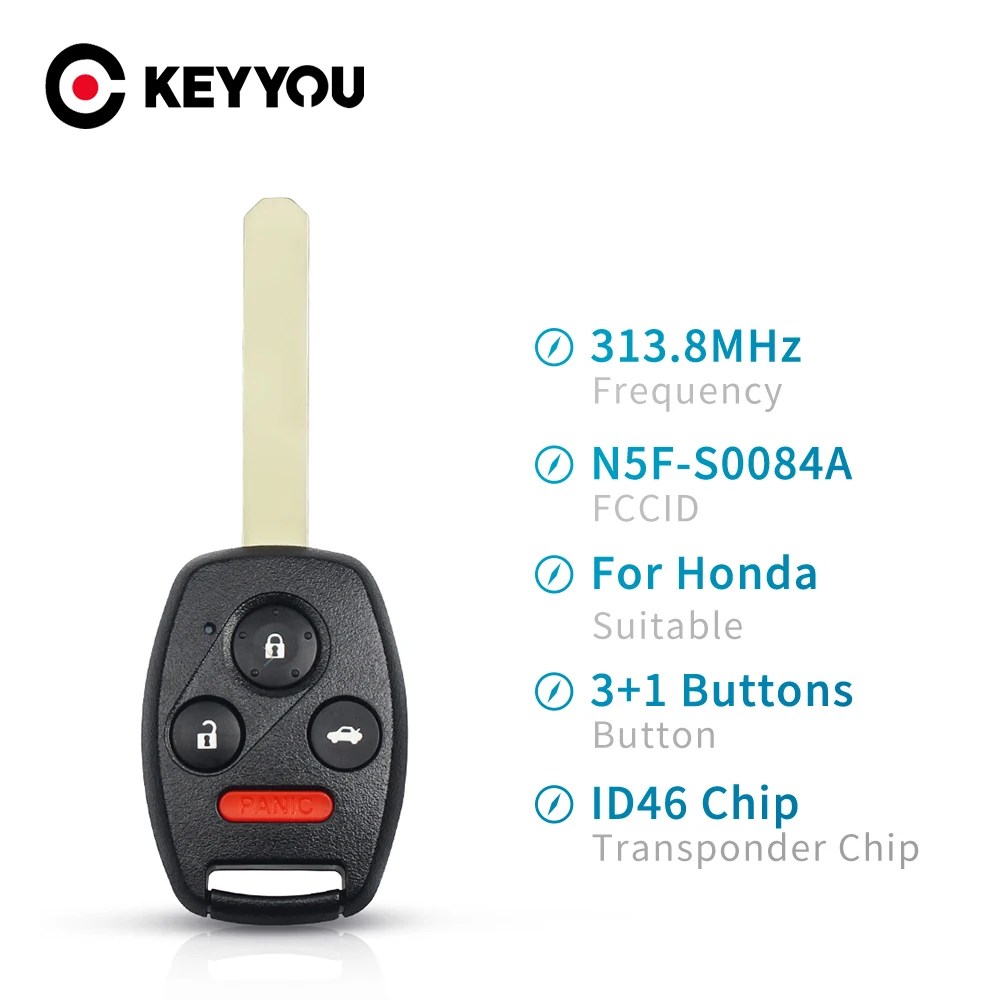 KEYYOU дистанционный ключ для автомобиля для Honda Civic EX Si 2006 2007 2008 2009 2010 2011 необработанное лезвие для Honda N5F-S0084A 313,8 МГц ID46 чип