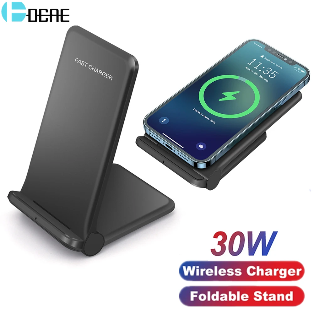 Беспроводное зарядное устройство Qi для iPhone 13 12 11 Pro XS XR 8, складная подставка для быстрой зарядки для Samsung S21, S20, S10, держатель для быстрой зарядки, 30 Вт