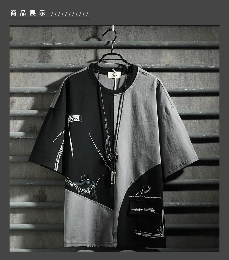 Модная мужская футболка в стиле хип-хоп с коротким рукавом, подходящая по цвету Мужская футболка с 5 рукавами