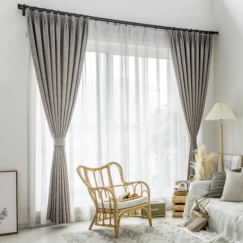 Занавески из натурального хлопка и льна, полузатемняющие, серые, дл...