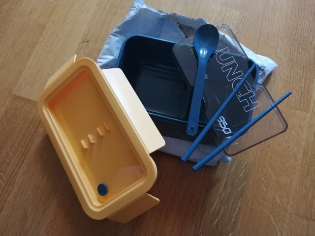 Пластиковый продукт, без ощущения слабости. Единственным недостатком является то, что пластик разделения между двумя отсеками не достигает этого выше, поэтому он не указан для переноски жидких продуктов, так как продукты обеих отсеков перестали смешиваться. Мне придется использовать его только для твердых продуктов.