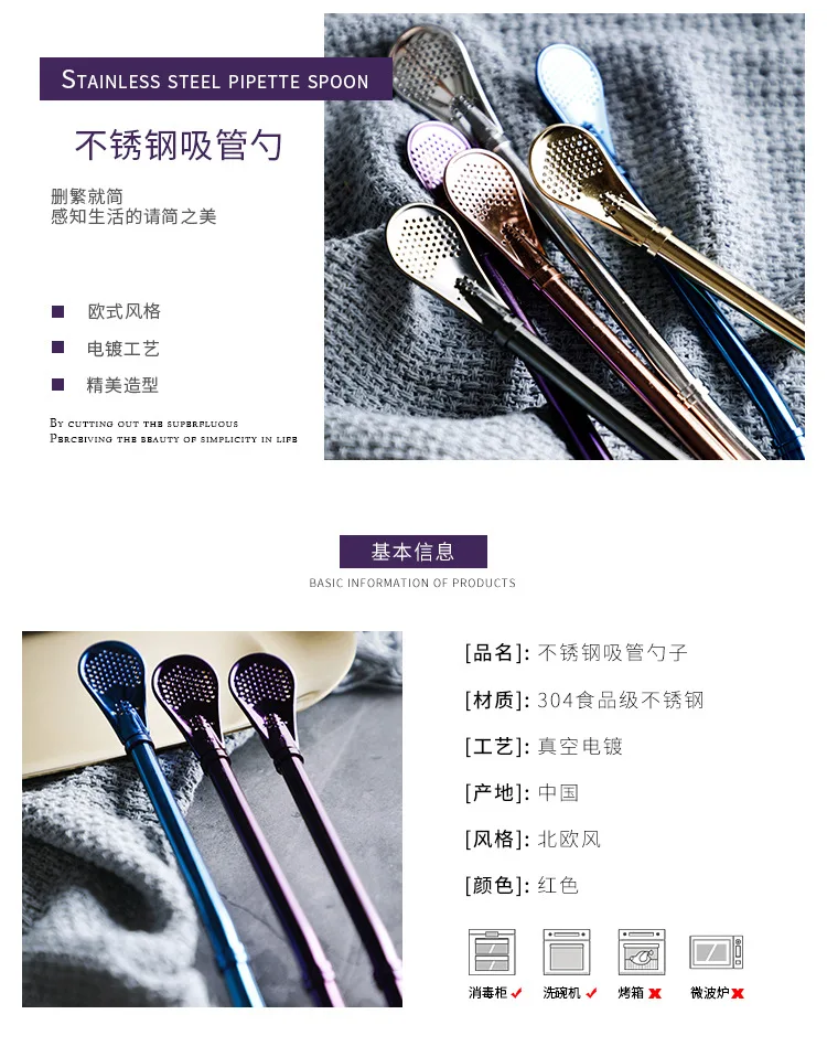 Ложка с питьевой соломинкой из нержавеющей стали, Чайный фильтр Yer...