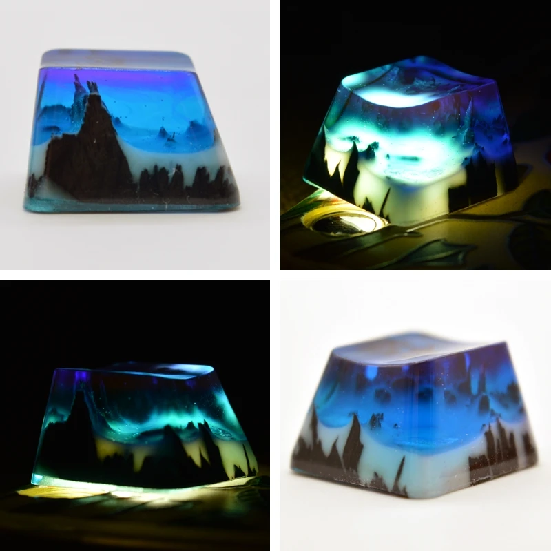 Колпачки для ключей ручной работы из смолы с подсветкой для переключателя Cherry Mx, механическая клавиатура OEM R4, колпачки для ключей с подсветкой снега, гор, джунглей, дерева